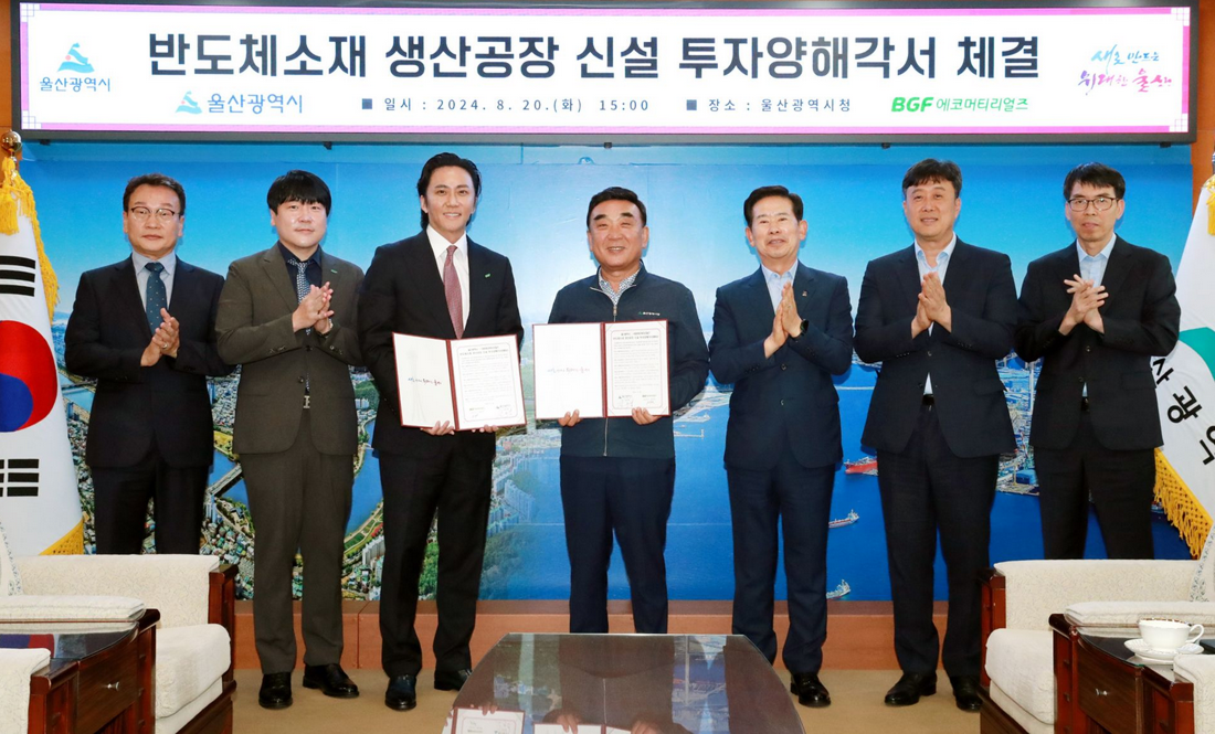 홍정혁 BGF에코머티리얼즈 대표이사는 “울산시의 지원에 감사드린다”며 “이번 신설 투자에 모든 역량을 기울임과 동시에 향후 관련 산업에 대한 지속적인 투자로 울산지역이 반도체 소재산업의 중심지가 될 수 있도록 노력해 나가겠다”고 밝혔다.