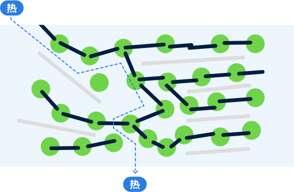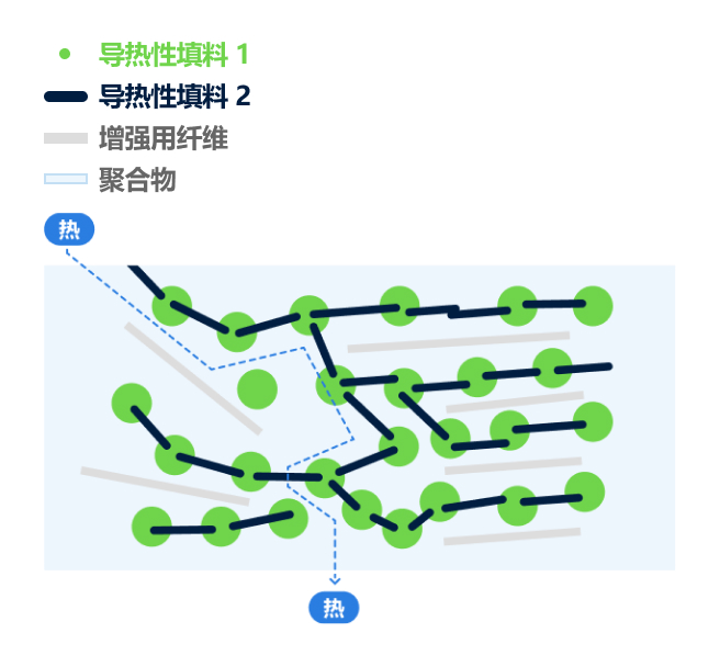 将多种形式的导热性填料进行复合,有效形成热传导网络(球状、片状、纤维形式等)